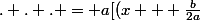 = ax^{2} + b x + c = a \begin{bmatrix}(x+\frac{b}{2a} )^{2} - \frac{b^{2}}{4a^{2}} + \frac{4ac}{4a^{2}}\end{bmatrix})