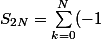 ^{k}=\sum_{0\le 2k \le 2N}(-1)^{2k} +\sum_{0 \le 2k+1 \le 2N}(-1)^{2k+1})