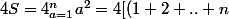 +(2+3+..+n)+(3+4+..+n)+..+((n-1)+n)+n]=4\bigsum_{k=0}^{n-1}A_n-A_k=2n^2(n+1)-2\bigsum_{k=0}^{n-1}k^2+k=2n^2(n+1)-2(S-n^2)-n(n-1)=n(n+1)(2n+1)-2S)