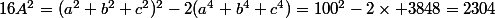 ^2-2(a^4+b^4+c^4)=100^2-2\times 3848=2304\)