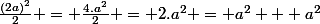 ^2}{2} = \frac{4.a^2^}{2} = 2.a^2 = a^2 + a^2)