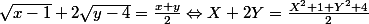 p1 : \/¯(x-1) + 2\/¯(y-4) = (x+y)/2 <=> x=2 et y=