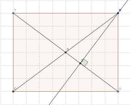 TRUC est un rectangle de périmètre 28 cm et de longueur 8 cm. Le point O est l'intersection de ses diagonales.