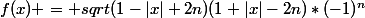 il n'y a pas longtemps je me suis posé la question de savoir si on pouvait trouver une fonction dont la courbe représentative décrit des demi-cercles de rayon 1 et de centre les points de coordonnée (2n;0) et n entier relatif.