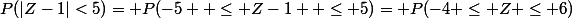 = P(-5 \leq Z-1 \leq 5)= P(-4 \leq Z \leq 6))