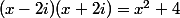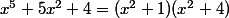 Le polynôme se factorise donc comme suit:(x-i)(x+i)(x-2i)(x+2i)