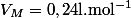 du gaz "Amoniac" dans un litre d'eau pure et on donne comme valeur du volume molaire :