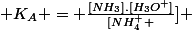 Donner l'expression de la constante d'acidité :