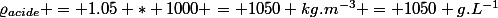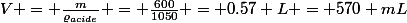 Je reprends on sait que la densité de l'acide est de 1.05.