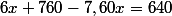 alors : tu as : 6x+7.6y=640 6X+7.6y=640
