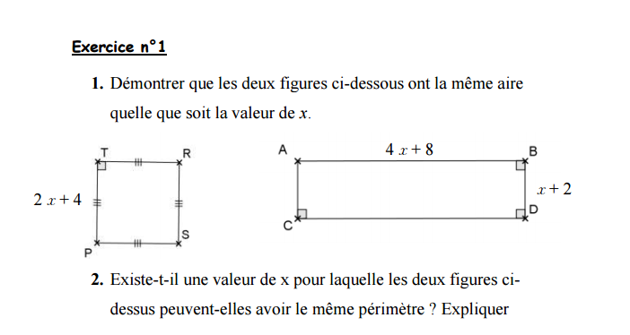 2) a) Aire (PTRS) = (2x+4)(2x+4) Aire (ABDC) = L*l = (4x+8)(x+2)