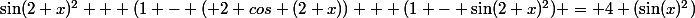^2 + (1 - ( 2 cos (2 x)) + (1 - \sin(2 x)^2) = 4 (\sin(x)^2))