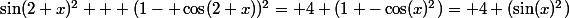 ^2 + (1- \cos(2 x))^2= 4 (1 -\cos(x)^2)= 4 (\sin(x)^2))