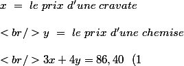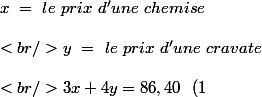 3chemises coûtent 3x et 4 cravates 4* 3x/5 soit 12x/5
