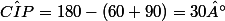 . nous savons que angle ICP = 60° angle IPC = 90° donc angle CIP = 30°
