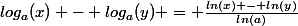 - log_{a}(y) = \frac{ln(x) - ln(y)}{ln(a)})