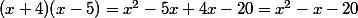 or d'apres la 1) tu sais que (x+4) (x-5)=x²-x-20 donc resoudre x²-x-20=0 reviens à resoudre (x+4)(x-5)=0