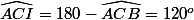 Le triangle parait équilatéral puisque les 3 cotés sont identiques, il y a une droite qui continue la base du triangle (droite BC) de la même longueur qu'un coté du triangle pour former la droite CI (le point C est du coup le milieu de BI, et une droite relie le point I a A pour former la droite AI, et le triangle ACI