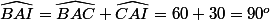 Ou bien en exploitant le fait que dans un triangle rectangle, la médiane relative à l'hypoténuse a sa longueur qui en fait la moitié, on peut dire que ABI rectangle en A.