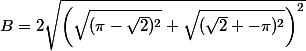 ^2}+\sqrt{(\sqrt2 -\pi)^2}\right)^2}\\<br />B=2\left(\sqrt{\left(\sqrt{(\pi-\sqrt2)^2}+\sqrt{(\sqrt2 -\pi)^2}\right)}\right)^2\\<br />B=2(\sqrt{(\pi-\sqrt2)^2}+\sqrt{(\sqrt2 -\pi)^2})\\<br />...)