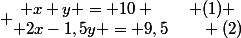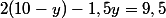 Tu as 2 \times x - 1.5 \times ( 10 - x) = 9.5