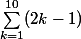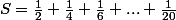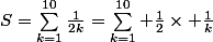 chaa13 a écrit:OK merci pas grave, donc si je veut a chaque fois ajouter deux je fais 1/2k,mais pourquoi avez-vous mis 10 et pas 20 pour "n" car on veut sarrêter a 20 ! Pouvez-vous me faire un exercice de la même sorte que ça mais par exemple je dois ajouter des nombre au numérateur , ajouter a chaque fois ...
