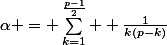 = \sum_{k=1}^{\frac{p-1}{2}} \frac{p}{k(p-k)} = p \sum_{k=1}^{\frac{p-1}{2}} \frac{1}{k(p-k)} .)