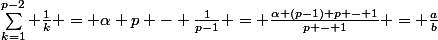 =\frac{1}{(p-1)!}(\sum\limits_{k=1}^{p-2} \frac{(p-1)!}{k}))