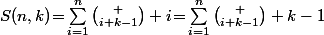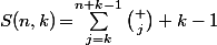 \!=\!\sum_{i=1}^{n}\binom {i+k-1} {i}\!=\!\sum_{i=1}^{n}\binom {i+k-1} {k-1})