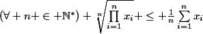 \ \sqrt[n]{\prod_{i=1}^{n}x_i} \leq \frac{1}{n}\sum_{i=1}^{n}x_i)