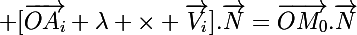 La seule chose qui change dans cette formule lorsque l'on change de plan c'est le nombre \vec{OM_0}.\vec{N}. C'est l'équation d'une droite !