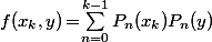 \!=\!\sum_{n=0}^{k-1}P_n(x_k)P_n(y))