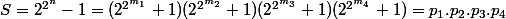 (2^{2^{m_2}}+1)(2^{2^{m_3}}+1)(2^{2^{m_4}}+1)=p_1.p_2.p_3.p_4)