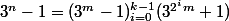 \Bigprod_{i=0}^{k-1}(3^{2^im}+1))