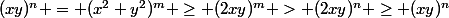 ^n = (x^2+y^2)^m \geq (2xy)^m > (2xy)^n \geq (xy)^n)