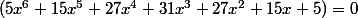 (5x^{6}+15x^{5}+27x^{4}+31x^{3}+27x^{2}+15x+5)=0)