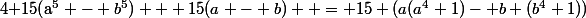 + 15(a^5 - b^5) + 31(a^4 - b^4) + 27(a^2 - b^2) + 15(a - b))