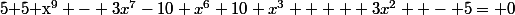 Zweig a écrit:(5x^{6}+15x^{5}+27x^{4}+31x^{3}+27x^{2}+15x+5)=0)