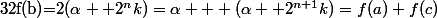 =2(\alpha +2^{n}k)=\alpha + (\alpha +2^{n+1}k)=f(a)+f(c))