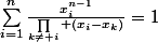 = x+ s +\sum_{i=1}^n \dfrac{1}{x-x_j} res(F(x), x_j)= x+ s +\sum_{i=1}^n \dfrac{1}{x-x_j}<br /> \dfrac{x_j^{n+1}}{w'(x_j)})