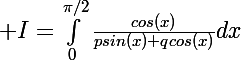 Appelle J la même intégrale avec un sinus à la place du cosinus au numérateur.