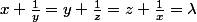 En lisant rapidement j'avais cru lire "x+1/x=y+1/y=z+1/z" et je me demandais pourquoi autant de cinéma, heureusement j'avais mal lu :ptdr: