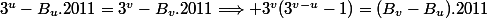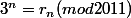 1- Montrer qu'il existe au moins deux puissances de 3 dont la différence est divisible par 2011.