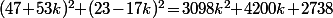 ^2\!\!+\!(23\!-\!17k)^2\!=\!3098k^2\!\!+\!4200k\!+\!2738)