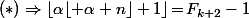 \Rightarrow\lfloor\alpha\lfloor \alpha n\rfloor+1\rfloor\!=\!F_{k+2}-1\)