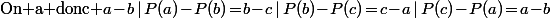 \!-\!P(b)\!=\!b\!-\!c\,|\,P(b)\!-\!P(c)\!=\!c\!-\!a\,|\,P(c)\!-\!P(a)\!=\!a\!-\!b)