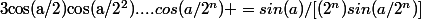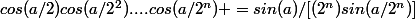 cos(a/2^2)....cos(a/2^n) =sin(a)/[(2^n)sin(a/2^n)])