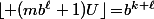 U\rfloor\!=\!b^{k+\ell})