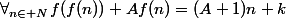 je corrige, du coup, des candidates sont f_a(n)=n+a, a entier naturel avec k=a(2+A)