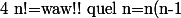 Oui n! est la factorielle de n, il y a aussi la sous factorielle, hyper factorielle, super factorielle, ou encore super du perfactorielle :p